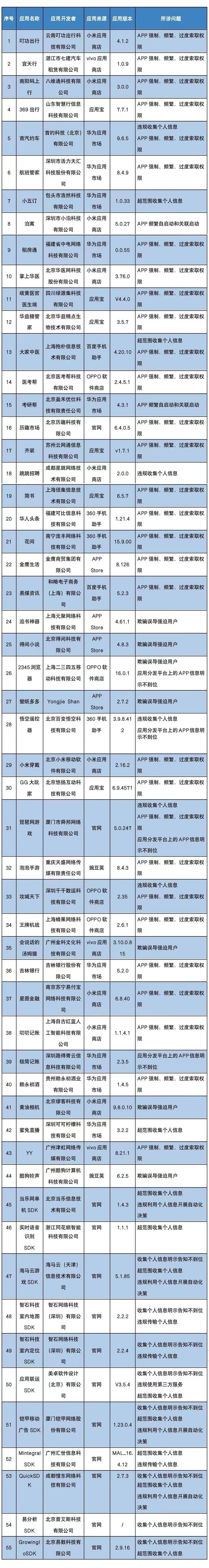 工信部称,被通报的APP及第三方软件开发工具包应按有关规定进行整改,整改落实不到位的,将依法依规组织开展相关处置工作。