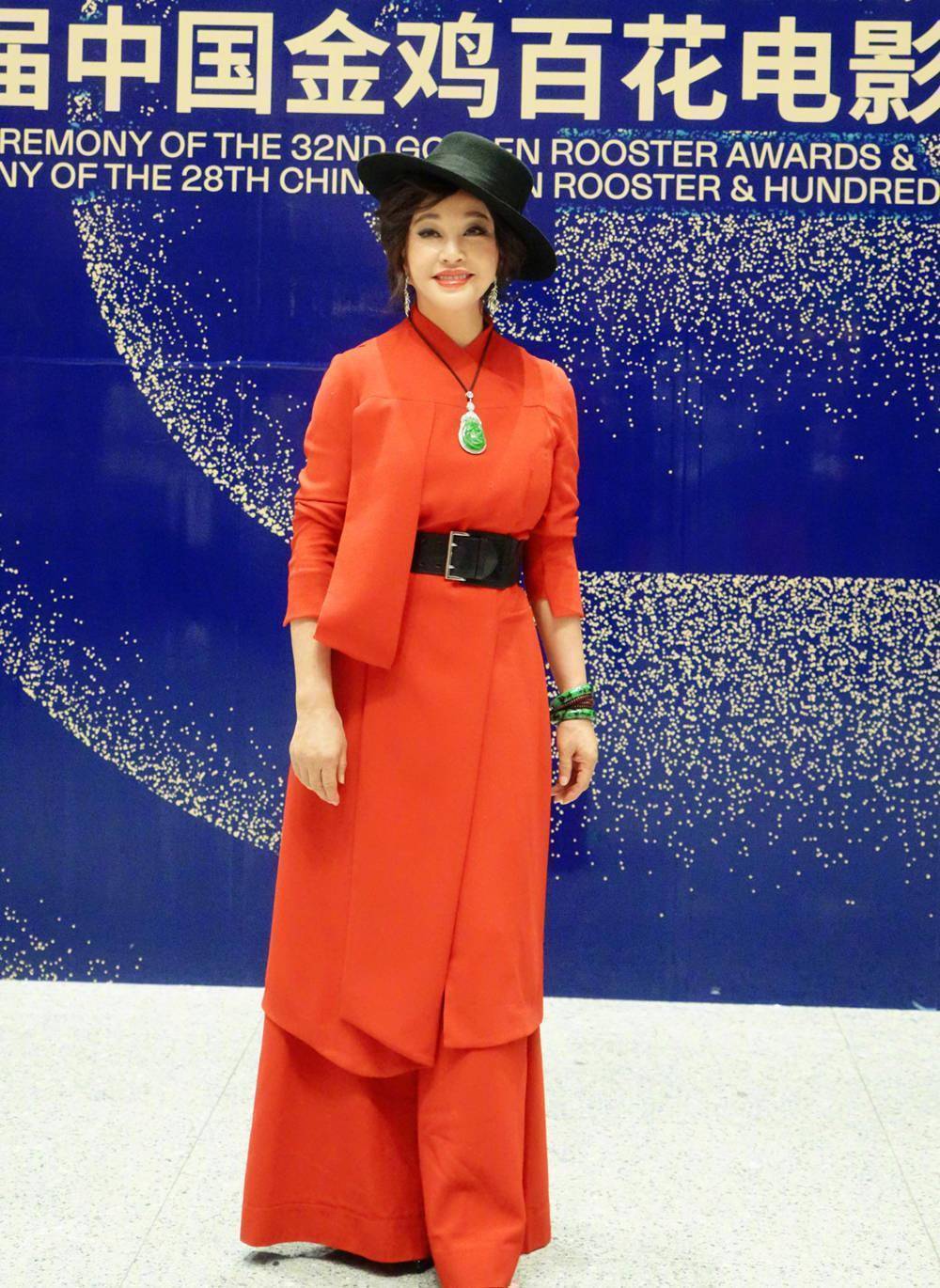 红裙子可以说是非常的大气了。其实这条裙子还是蛮适合刘晓庆的,因为看起来很高级。